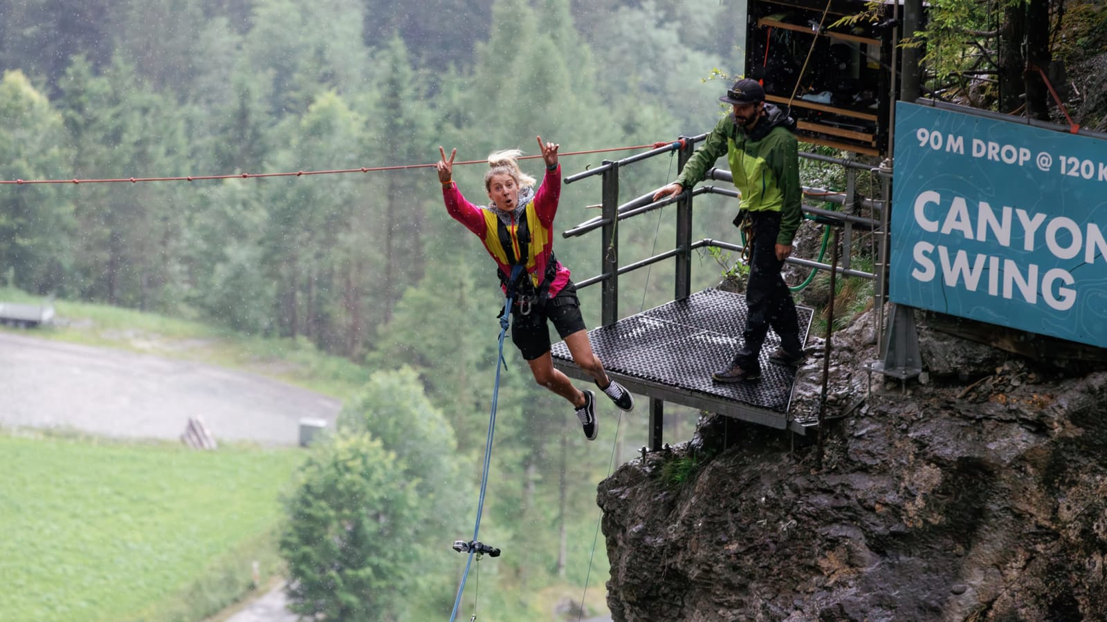 The Canyon Swing inside Grindelwald Glacier Gorge delivers a contained, dramatic pendulum drop at 153 CHF in 3h, ideal if it's your first experience.