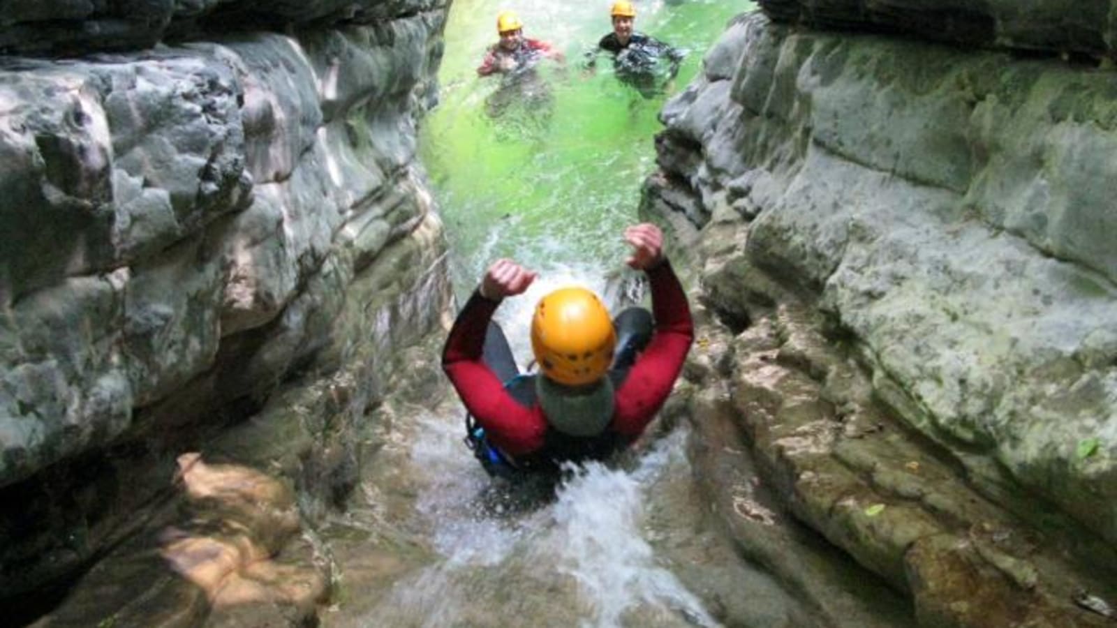 Wetsuit, helmet and harness are standard operator-provided gear for this type of canyon descent, but bring a swimsuit to wear underneath and water-ready footwear with ankle support. For a half-day occasionally sporty session, a small dry bag for your phone and a change of clothes for after is all you need.