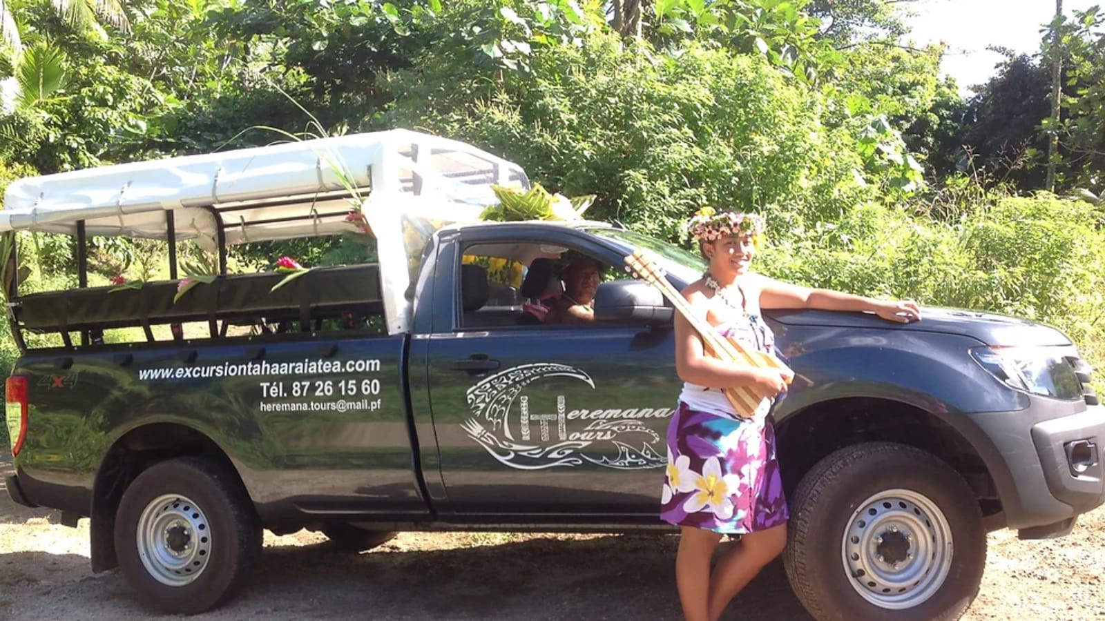 Meet Heremana Tours at Quai de Tapuamu, Taha'a 98733, French Polynesia, reached by ferry or shuttle boat from Raiatea, the nearest hub with regional air connections.