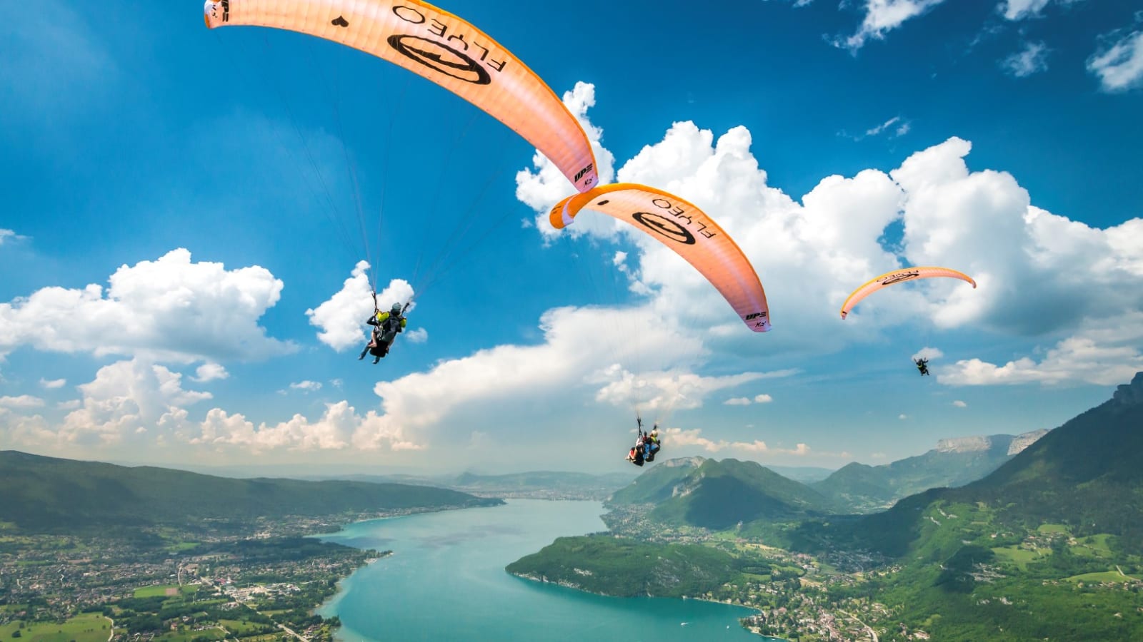 Paragliding flight over the lake of Annecy, Haute-Savoie