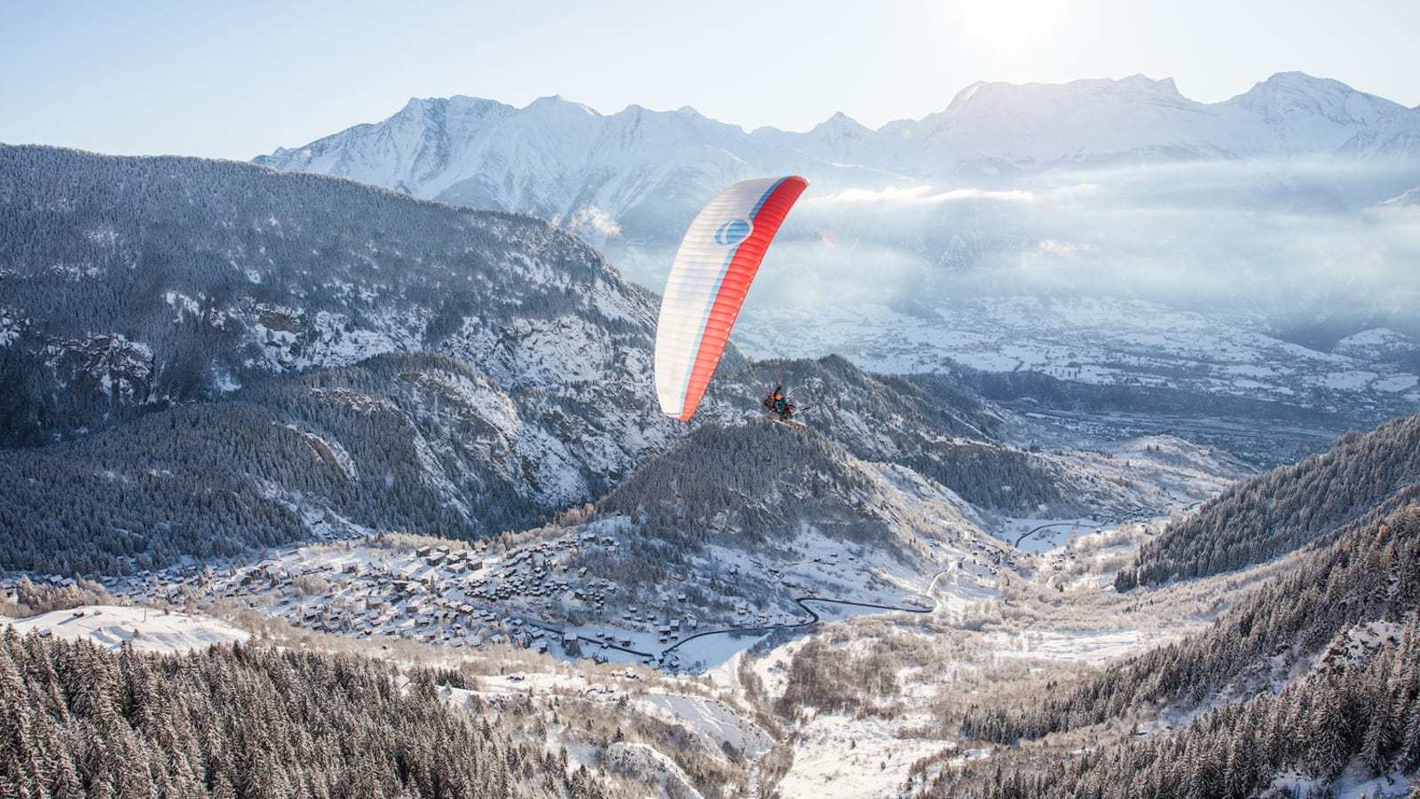 Best value Winter Tandem paragliding flight over the Aletsch Region from Brig, Switzerland
