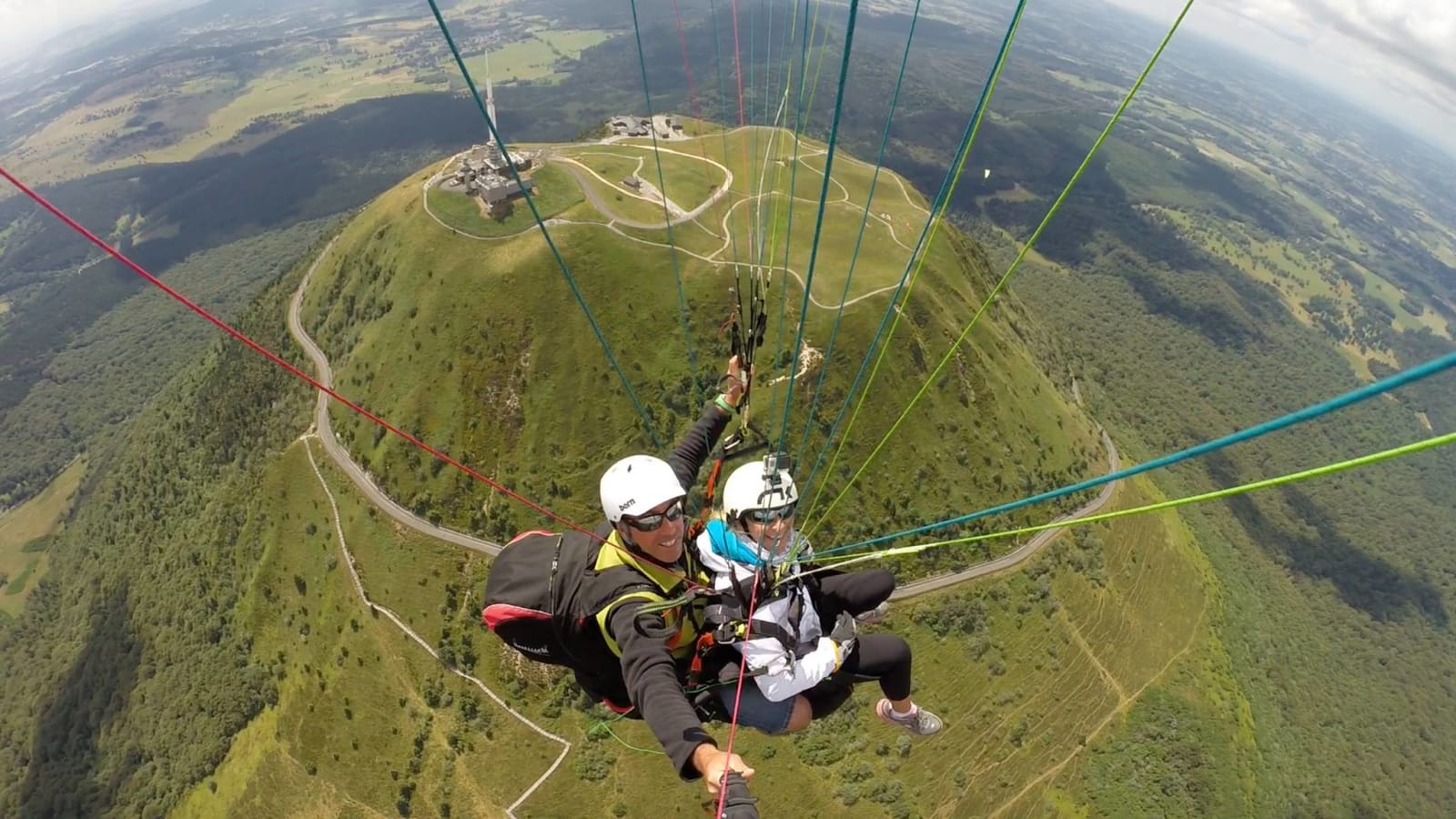 Wear closed-toe shoes with ankle support and dress in layers: temperatures above the Puy de Dôme drop noticeably even in summer. No specific gear is required, as Air Dômes Parapente provides the harness and helmet.