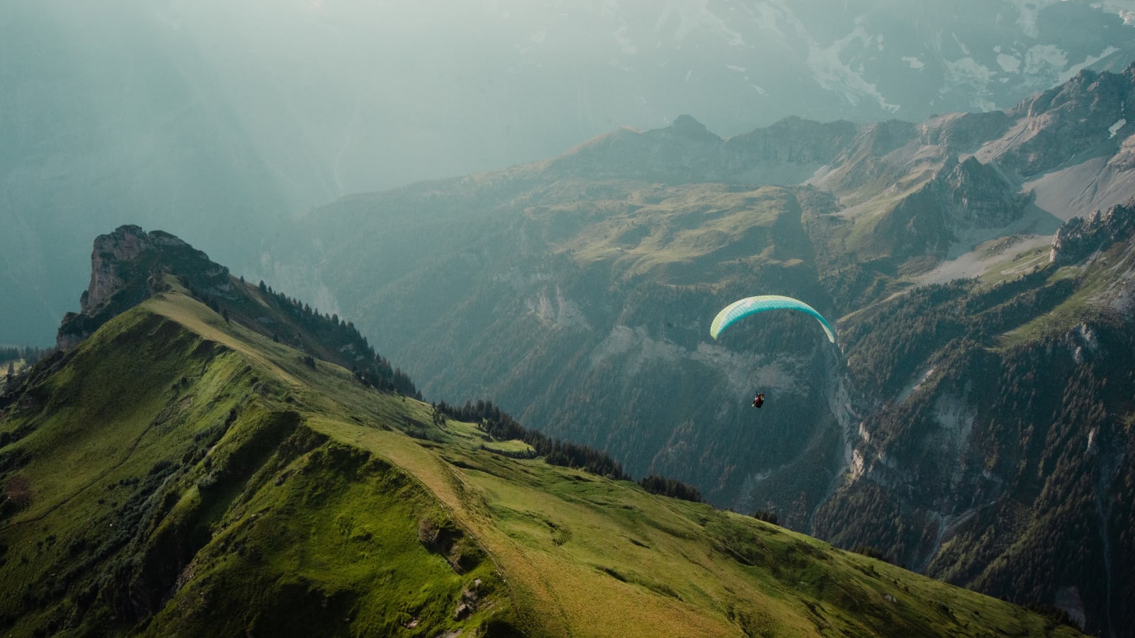 Tandem paragliding over Lauterbrunnen Valley, Switzerland