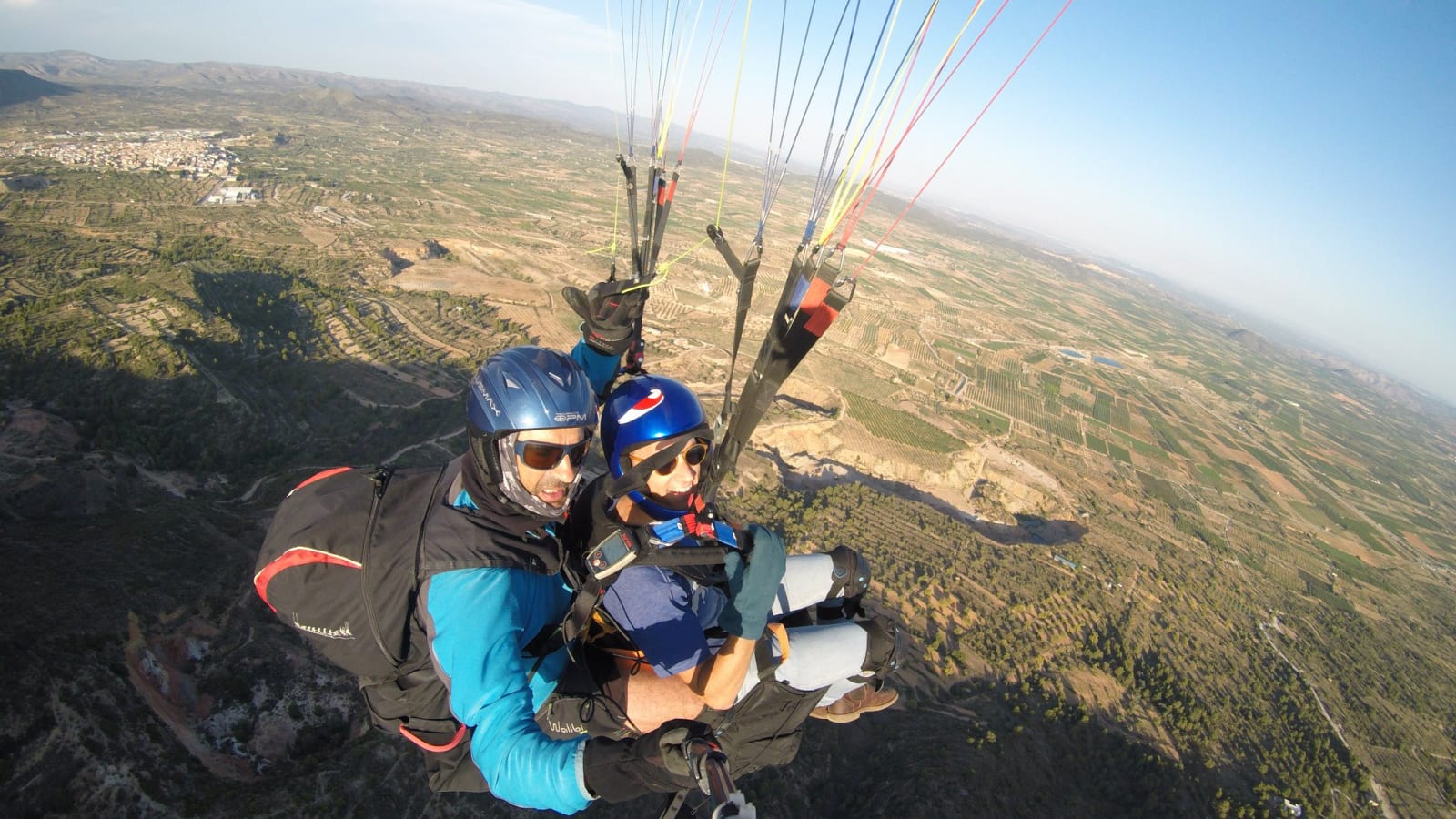 Wear closed-toe shoes with ankle support and dress in layers: temperature drops noticeably at altitude even in summer. No gear to bring, Parapente Valencia provides the harness, helmet and wing.