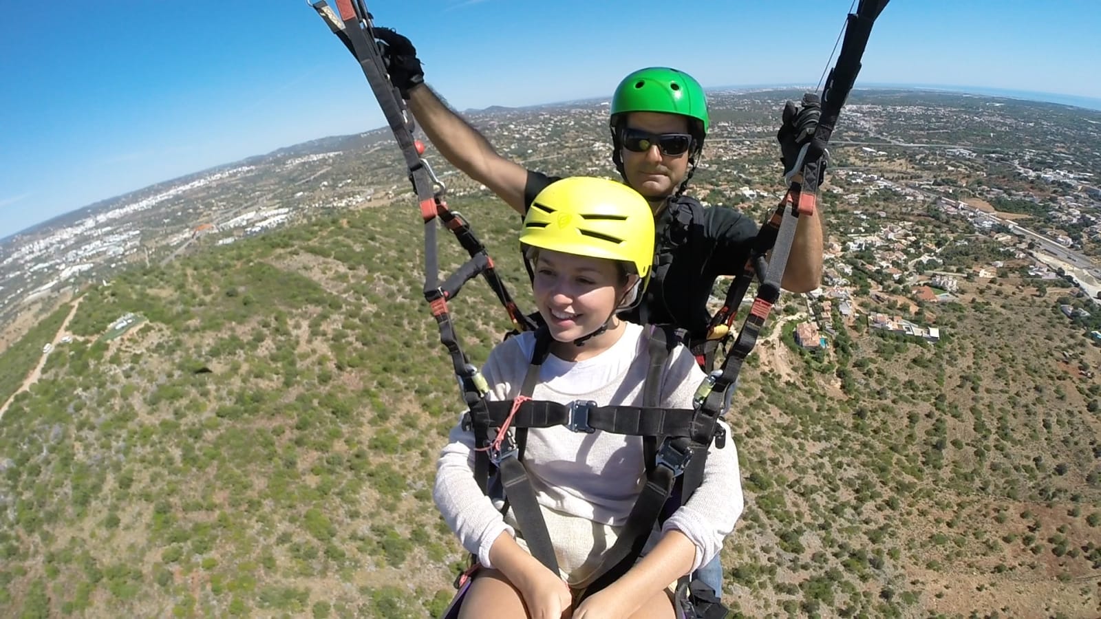 The launch off the cliff or hill is the sharpest adrenaline hit: your feet leave the ground and the Atlantic coastline drops away beneath you in seconds. After that, the tandem glider stabilises and you cruise at altitude with a panoramic view of the Algarve shore.