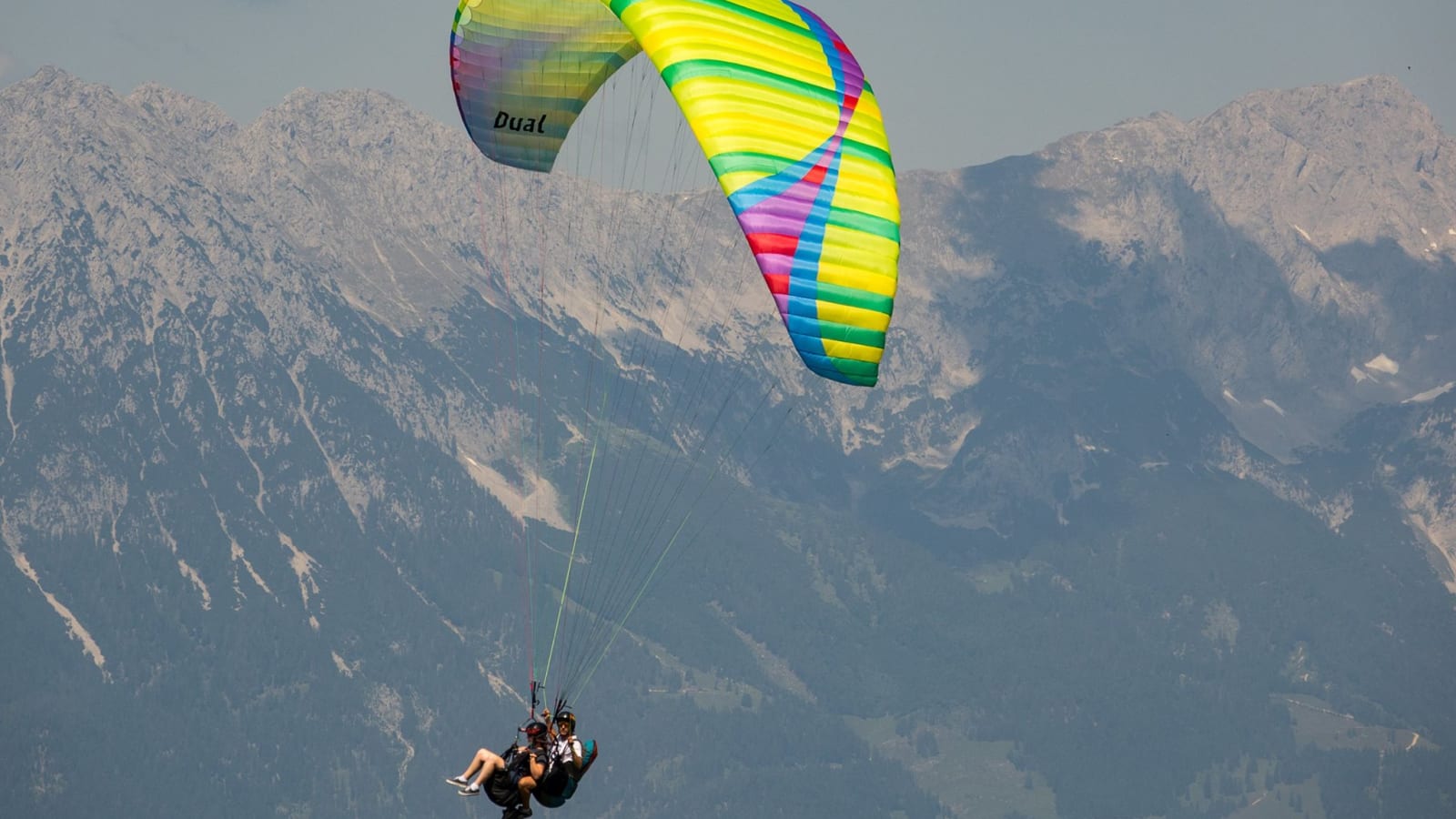 Tandem Paragliding flight from the Hohe Salve, over the Kitzbühel Alps