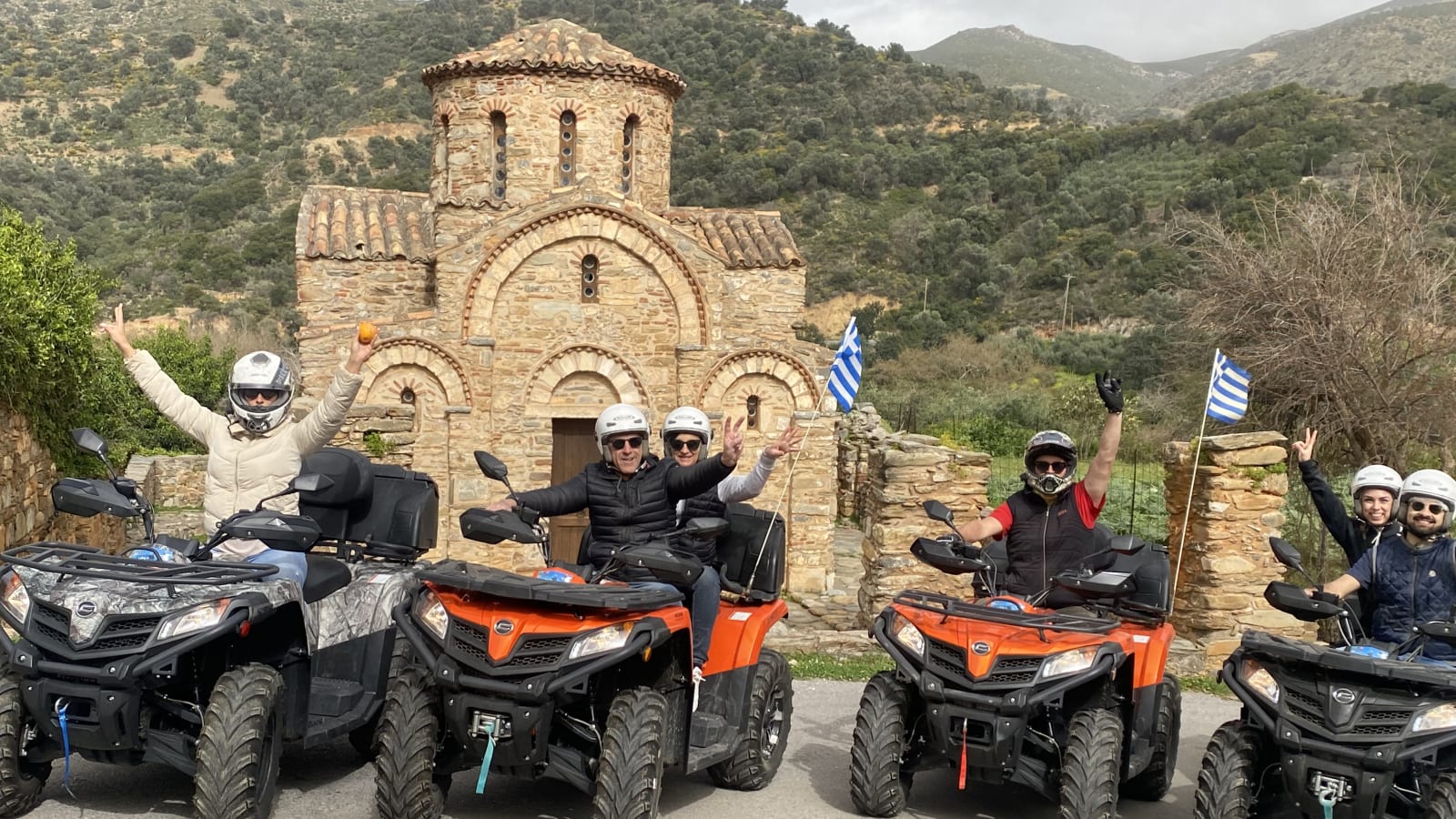 Wear closed-toe shoes and long trousers to protect against dust and trail debris. Both tours run 3h to 3.5h under the Cretan sun, so sunscreen, sunglasses and a light layer are non-negotiable.