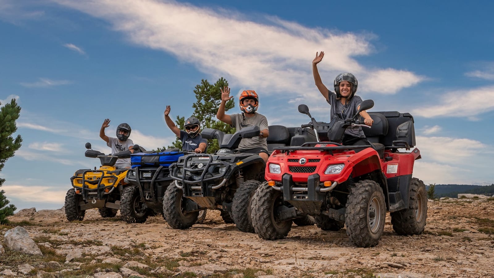 Gudar Aventura runs a single guided tandem quad tour through the Sierra de Gudar, priced at 70 € per person for a session lasting 1.5h to 2.5h. Physical level is open to everyone, no prior off-road experience required. Guides operate in English, French and Spanish, so mixed-nationality groups are covered. Book directly with Gudar Aventura at their Gudar meeting point and confirm the exact duration with them when reserving.