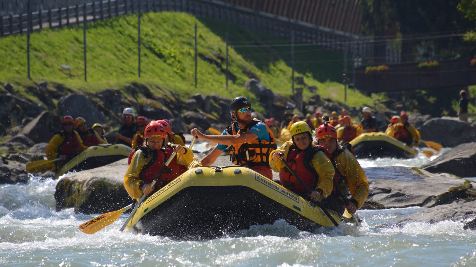 Both operators meet you in the Val di Sole valley: Rafting Extreme Waves is at Via del Comun 1 in Commezzadura, and TrentinoWild is at Via alle Còntre 2 in Caldes, each reachable by car via the SS42 road through Trentino.