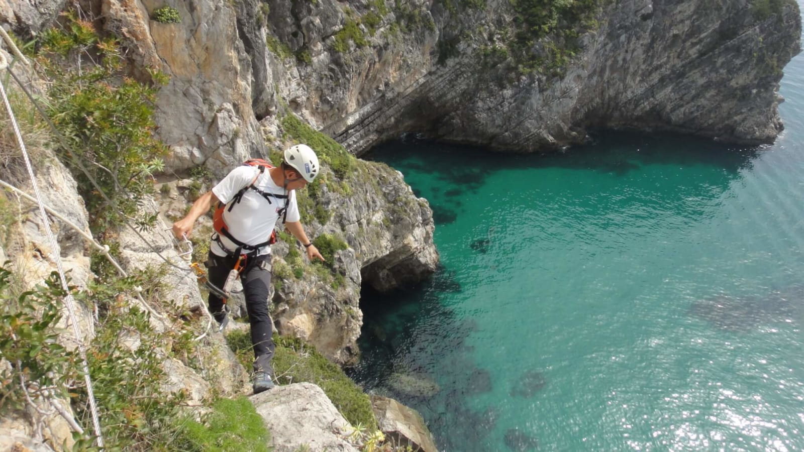 The route name, Caminho do Mar, translates to "Path of the Sea", which means you're climbing the limestone cliffs of Arrábida with Atlantic Ocean exposure directly below. The sections where the rock face is steepest and the sea is visible directly underfoot tend to be the peak adrenaline moments.